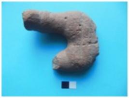 | Description / विवरण | Fragmentary waist of a human figurine with one full leg and other broken. |