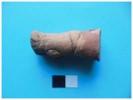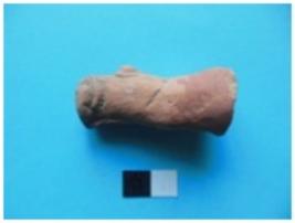 | Description / विवरण | Fragmentary leg of an animal. Red wash very thick. |