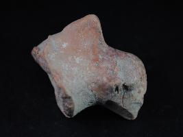 | Description / विवरण | Terracotta animal figurine probably part of a bull figurine; surface is poorly damaged. No surface treatment or decoration is visible. |