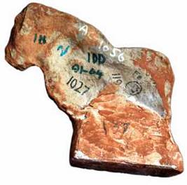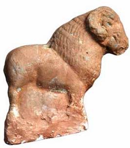 | Description / विवरण | A Ram standing on pedestal with robust body, firm legs, curved horns, snout with slightly open mouth, short tail, folded ear lobes and raised neck. It is a double moulded figure. Side portion is available. |