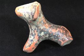 | Description / विवरण | It is a elephant figurine made of terracotta. It is well fired and color is red. It has conical eyes. Its all legs and trunk are missing. There are some red slip carved on its surface.It may be used as a toy. The object losing its natural color. Deposition of dust and dirt on it. |