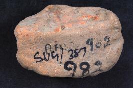 | Description / विवरण | It is a human head made of terracotta. It is well fired and color is red. Its face details are clearly visible. Its hair are decorated. Its bottom part is missing. It has some incised design on it. It may be used as a toy. The object losing its natural color. Surface is rough and flaked. |