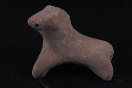 | Description / विवरण | It is a horse figurine made of terracotta. It is well fired and color is red. Its two legs and both ears are missing. Its face details are clearly visible. It may be used as a toy. The object losing its natural color. Surface is rough and flaked. There are some cut line on mane. |