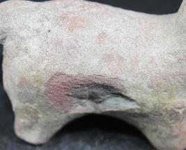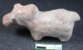 | Description / विवरण | Damaged humped Bull figurine with prominent broken horns, snout, tail and thick joined legs having rough surface. |