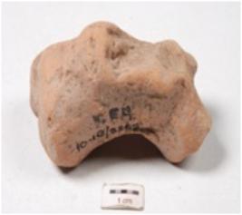 | Description / विवरण | A handmade terracotta humped bull figurine with partly chipped off hump, head is missing and legs are partly broken. |
