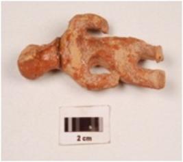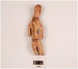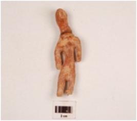 | Description / विवरण | A handmade terracotta male figurine, crudelly modelled, face prominently pinched, left hand partly damaged, long and narrow upper body part with short legs, slightly tilted to its right side, made with fine clay and well baked, surface treated in red slip mended. |