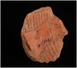 | Description / विवरण | Fragment of handmade terracotta bird. Legs and head are missing. Wings are partly broken, incised lines decoration of surface. Wash treatment is given in red colour. |