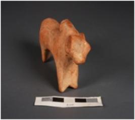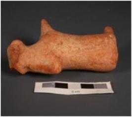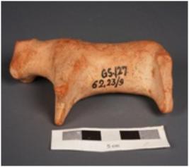 | Description / विवरण | Handmade terracotta bull figurine, made with well levigated clay. Prominent hump, front joined legs are intact. Hind legs are partly broken. Appliqued tail. Facial features are lacking, wash treatment is given on surface in red colour. |