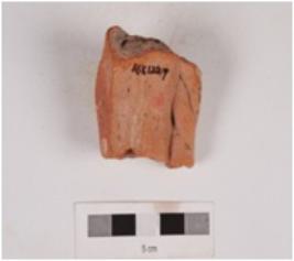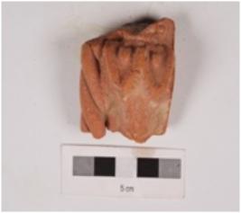 | Description / विवरण | Fragment of a headless terracotta female bust with double beaded neckless marked by dotts, hands are folded on chest, naval marked by a circular pinhole. Lower portion missing, a piller with spiral, ill fired, traces of dull red wash. |