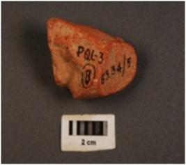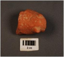 | Description / विवरण | Terracotta animal figurine with two ears visible face broken, neck visible, red wash applied on surface. |