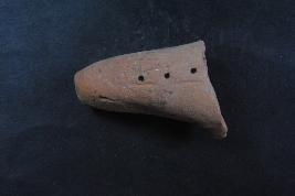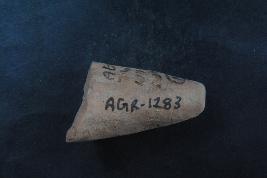 | Description / विवरण | This is a piece of animal leg made of terracotta was found in Agroha trench no. WD7, layer no.9. It is well fired and color is red. There are some cut marks on its surface. It may be used as a toy. Surface is rough and flaked. The object loosing its natural color. Deposition of dust and dirt. |