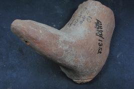 | Description / विवरण | This is a animal figurine made of terracotta and was found in Agroha trench no.WAH20, layer no. 1. It is well fired and color is red. Its frant part is missing. There are some cut marks and incised dotted design on its surface. It may be use as a toy. Deposition of dust and dirt. |