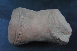 | Description / विवरण | This is a animal figurine made of terracotta was found in Agroha. It is well fired and color is red. Its head and all legs are missing. There are some cut marks on its surface. It may be used as a toy. Surface is rough and flaked. The object loosing its natural color. Deposition of dust and dirt. |