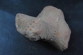 | Description / विवरण | This is a animal figurine made of terracotta was found in Agroha. It is well fired and color is red. Its back part below the neck is missing. There are some incised design on its surface. It may be used as a toy. Surface is rough and flaked. The object loosing its natural color. Deposition of dust and dirt. |