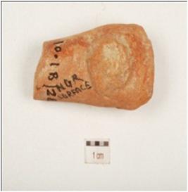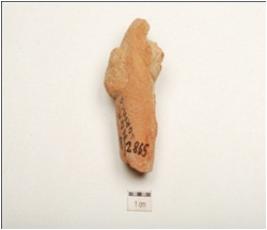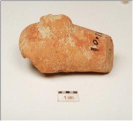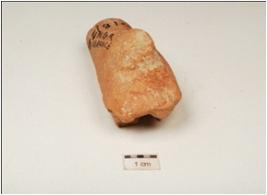 | Description / विवरण | A fragment of terracotta leg, broken at both the ends, hollow inside, knee portion made with extra clay. |