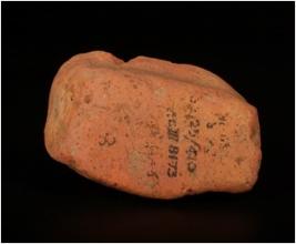 | Description / विवरण | Handmade terracotta fragment of a round plaque showing a chakra hole aloft in vishnu s left hand with doubled figurine inserted between this spokes, red in colour. |