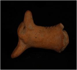 | Description / विवरण | Terracotta handmade head of bird figurine, crowned head, Lower portion is missing. Eyes are suggested by pin holes, pinched nose, long neck, red in colour. |