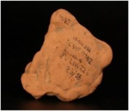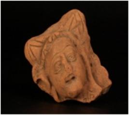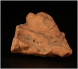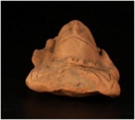 | Description / विवरण | Terracotta moulded female head with incised rectangular head dress and broad pinched ears, incised eyes and eyebrow with pin hole nostrils. Ill fired, gritty clay and traces of red slip. |