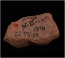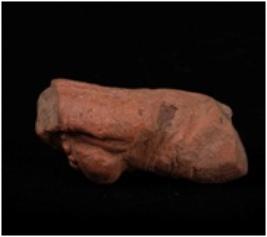 | Description / विवरण | Terracotta moulded torso of female figurine wearing necklace with applique decoration, thin waist, prominent breast and incised decoration for drapery around naval and lower garment. Ill fired, gritty clay with traces of red slip. |