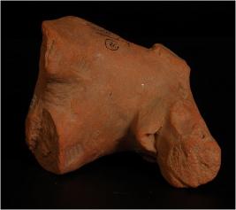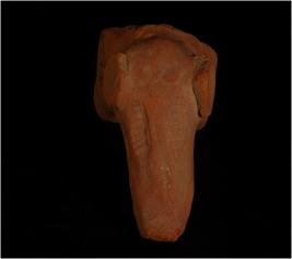 | Description / विवरण | Terracotta handmade elephant figurine with elongated trunk, incised lozenge shaped eyes, flat circular ears, pin hole nostrils with pinched mouth. Well baked, gritty clay and red in colour. |