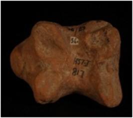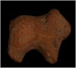 | Description / विवरण | Terracotta handmade animal figurine with beaded circular design on body. Conical face. Ill fired, well levigated clay and red in colour. |