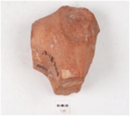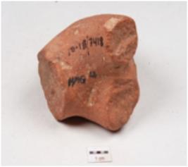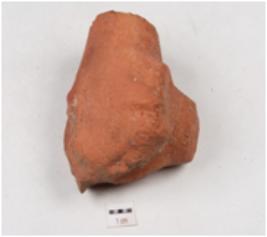 | Description / विवरण | Fragment of terracotta hind portion of animal figurine with smooth surface, red slipped and legs are partly broken. |