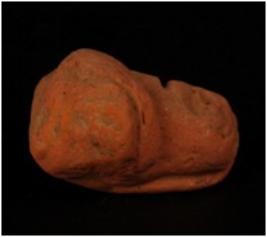 | Description / विवरण | A handmade well baked terracotta human bust with pin hole eyes, slit mouth and pinched nose. Eyes and garland made by applique work. Made with well lavigated clay and given a wash treatment in red colour. |