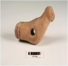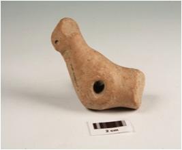 | Description / विवरण | A terracotta bird figurine, tail is missing, shout is broken, preforated in middle, well baked and surface has slip in dull red. |