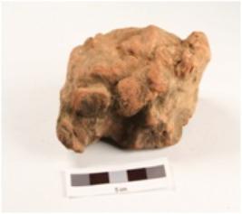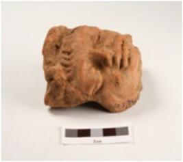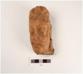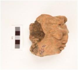 | Description / विवरण | A terracotta male head with half closed bulging eyes, thick lips, with kundals on ears, well baked and surface has wash in dull red. |