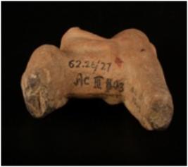 | Description / विवरण | Fragmentary terracotta horse with rider on its back. It has prominent neck, snout and tail. It also has headless rider seated on its back holding rein. |