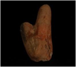 | Description / विवरण | Terracotta hind portion of animal figurine. leg is quite thick. Leg and tail missing. |