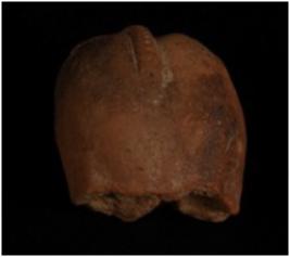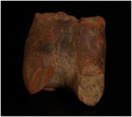 | Description / विवरण | Hind portion of animal figurine. Tail is intact with applique design and small pin hole design throughout the tail and tail turned upward. |