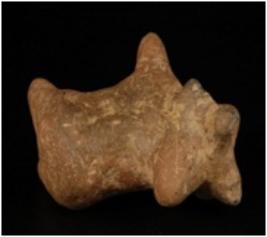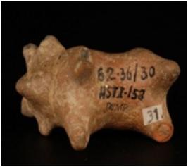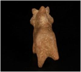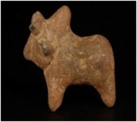 | Description / विवरण | Humped bull figurine with conical, pinched snout conical, pinched hump tip of horn is broken incised line around the neck and ears. |