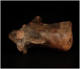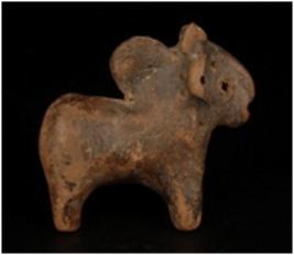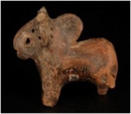 | Description / विवरण | Humped bull figurine with pin hole eyes, nose, snout and around the neck both horn broken and pin hole on tail. |