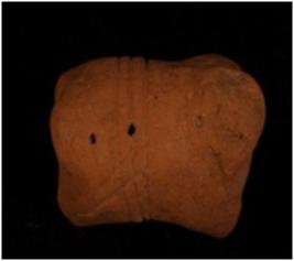 | Description / विवरण | Terracotta fragment of an animal figurine decorated with three parallel incised lines on hind portion and two lines crosswise, three pierce on hind portion. |