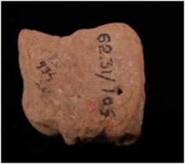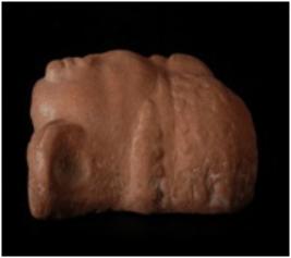 | Description / विवरण | Fragmentary terracotta represents the head portion of human figurine. It has flat nose, small thick lips, chubby cheeks, painted chin and elaborate hairdo with contral boss like projection. It is adorned with ear ornaments. |