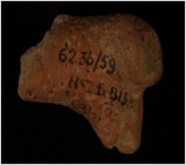 | Description / विवरण | Terracotta fragment of hind portion of a animal figurine with Incised decoration on body. |