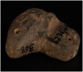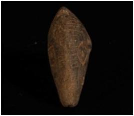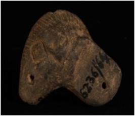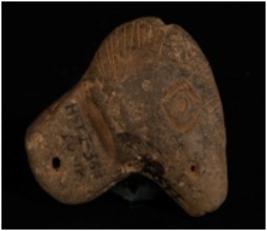| Description / विवरण | Terracotta bird head with lozeage eyes and a pierce at the centre with Incised decoration on head. |