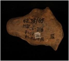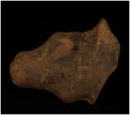 | Description / विवरण | Terracotta fragment of a humped bull. Figurine body is decorated with intersecting line of pin holes. |