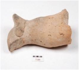 | Description / विवरण | A handmade terracotta bird head of a peacock with applique circular eyes, broken beak and long slender neck. |