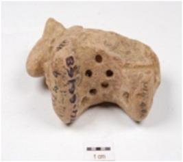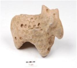 | Description / विवरण | A handmade terracotta humped bull figurine with punched designs all over the body perforated joint legs to facilitate wheel axle, hump and left hind portion damaged. |