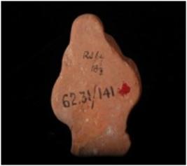 | Description / विवरण | Fragmentary mould made terracotta represents a human head with elaborate hair do. Its facial features are not clear. |
