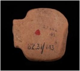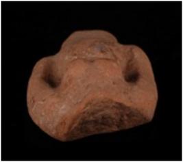 | Description / विवरण | Fragmentary terracotta plaque represting the torso of a female figurine with straight hands, slender waist, joint legs and prominent brest. |