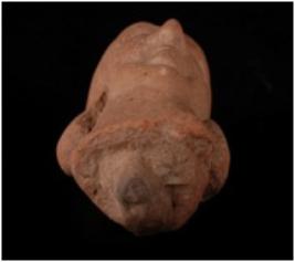 | Description / विवरण | Fragmentary terracotta represents a human head. It has pinched nose, thick droping lips, elongated applique ears and a ushnisha. |