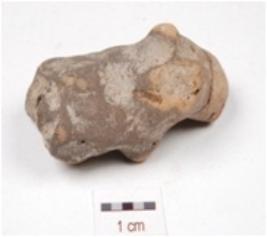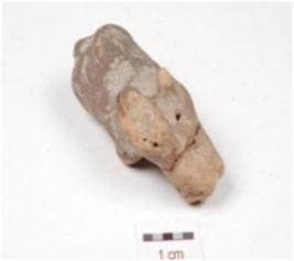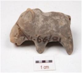 | Description / विवरण | A handmade terracotta animal figurine of a miniature rhinoceros, crudelly modelled with slit mouth, pinhole eyes, right ear damaged and missing legs. |
