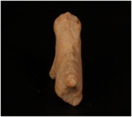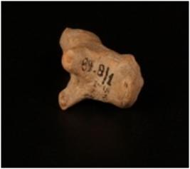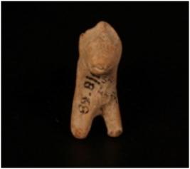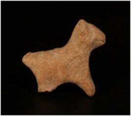 | Description / विवरण | Terracotta handmade animal figurine with conical face and legs and incised mouth. Hind legs missing. Well baked, well levigated clay with a wash in dull red colour. |