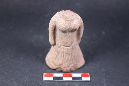 | Description / विवरण | A headless human figurine with prominent breast and long straight hands. It is shown wearing skirt like clothing and rough surface. |