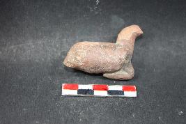 | Description / विवरण | An unidentified animal figurine with elongated neck and one intach leg and rough surface. |