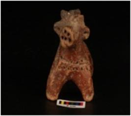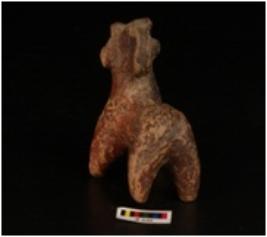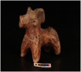 | Description / विवरण | Handmade terracotta figurine of a humped bull. Pinched hump. Pin hole eyes and ears, snout. With hole decoration on neck, ill fired and surface has traces of red slip. |