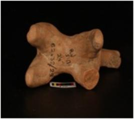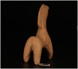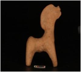 | Description / विवरण | Handmade terracotta animal figurine well baked and surface treated with dull red wash. Three legs are intact with a upright snout and semi-circular mean. |
